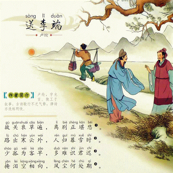 ⑴《全唐诗》此诗题下有注:一作严维诗,题作“送李端”。李端:作者友人,与作者同属“大历十才子”。