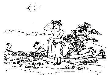 白天锄地,夜晚搓麻,农家男女都各司其事。小孩子不懂得种田织布之事,却也学着大人在桑树阴下种瓜。