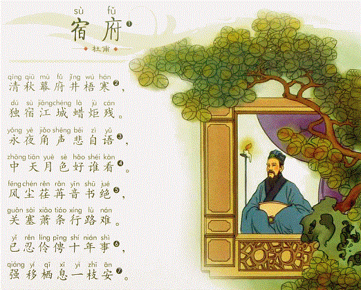 此诗作于唐代宗广德二年(764年)六月,新任成都尹兼剑南节度使严武保荐杜甫为节度使幕府的参谋。做这么个参谋,每天天刚亮就得上班,直到夜晚才能下班。杜甫家住成都城外的浣花溪,下班后来不及回家,只好长期住在府内。这首诗,就写于这一年的秋天。所谓“宿府”,就是留宿幕府的意思。因为别人都回家了,所以他常常是“独宿”。