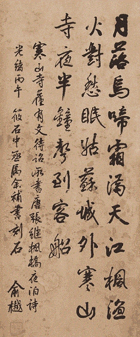 月落乌啼霜满天, 江枫渔火对愁眠。