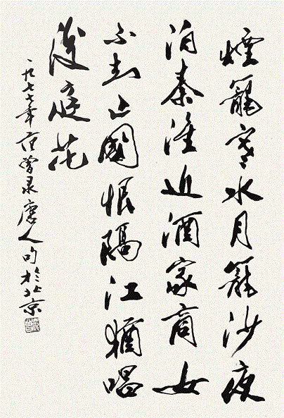 “夜泊秦淮近酒家”,看似平平,却很值得玩味。这句诗内里的逻辑关系是很强的。由于“夜泊秦淮”才“近酒家”。然而,前四个字又为上一句的景色点出时间、地点,使之更具有个性,更具有典型意义,同时也照应了诗题;后三个字又为下文打开了道路,由于“近酒家”,才引出“商女”、“亡国恨”和“后庭花”,也由此才触动了诗人的情怀。因此,从诗的发展和情感的抒发来看,这“近酒家”三个字,就像启动了闸门,那江河之水便汩汩而出,滔滔不绝。这七个字承上启下,网络全篇,诗人构思的细密、精巧,于此可见。