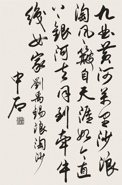 “九曲黄河万里沙,浪淘风簸自天涯”见唐·刘禹锡《浪淘沙》。淘:用水冲洗。簸:摇动。自:来自。这两句大意是:九曲黄河之中有无数的抄砾,它们随同黄河流经万里,经受了浪涛的冲洗和狂风的簸荡,从天涯一直来到这里。