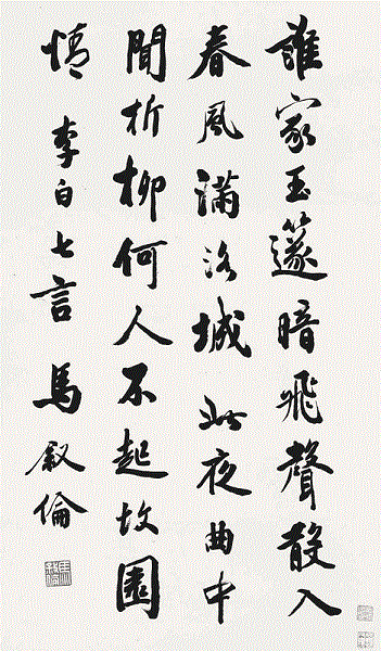 全诗扣紧一个“闻”字,抒写自己闻笛的感受。诗的第一句是猜测性的问句。那未曾露面的吹笛人只管自吹自听,却不期然而打动了许许多多听众,这就是句中“暗”字所包含的意味。第二句说笛声由春风吹散,传遍了洛阳城。这是诗人的想象,也是艺术的夸张。第三句说明春风传来的笛声,吹奏的是表现离情别绪的《折杨柳》,于是紧接一句说,哪个能不被引发思念故乡家园的情感呢!水到渠成而戛然而止,因而余韵袅袅,久久萦绕于读者心间,令人回味无穷。