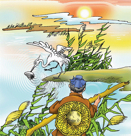 赵且伐燕:“今者臣来,过易水。蚌方出曝,而鹬啄其肉,蚌合而箝其喙。鹬曰:‘今日不雨,明日不雨,即有死蚌!’蚌亦谓鹬曰:‘今日不出,明日不出,即有死鹬!’两者不肯相舍,渔者得而并禽之。今赵且伐燕,燕赵久相支,以弊大众。臣恐强秦之为渔夫也。故愿王熟计之也。惠王曰:“善!”乃止。